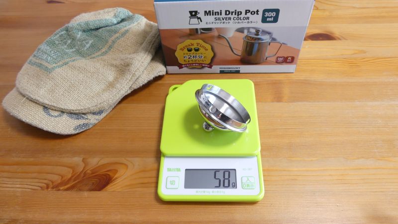 ハイマウントのミニドリップポット、商品紹介ページで表記されている公式重量は約200gです。