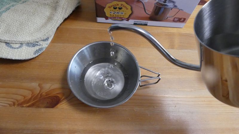 他社のミニドリップポットは直火NGなのが多いのですが、実際に山でケトル代わりに使うとなるとバーナーなどで加熱ができたほうが便利です。