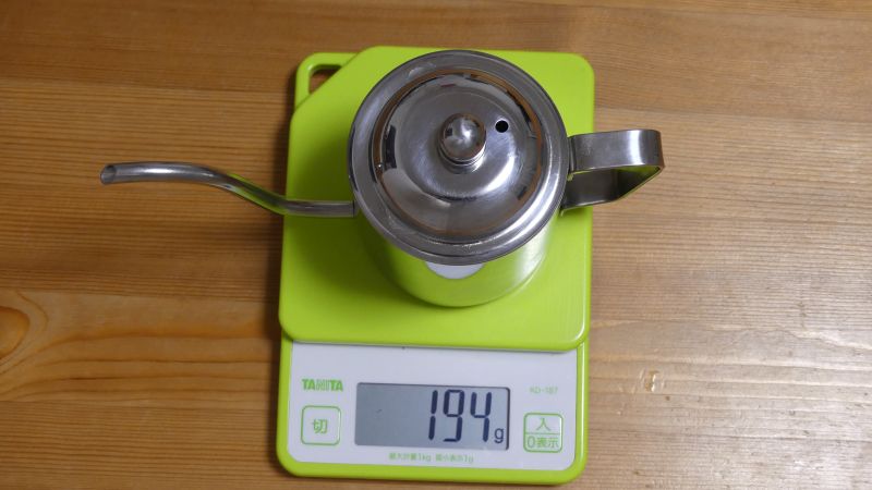 登山用のケトルが150~200gくらいなので重さの差はほとんどありません。ミニドリップケトルとしてもそこそこ軽量の部類に入ります。