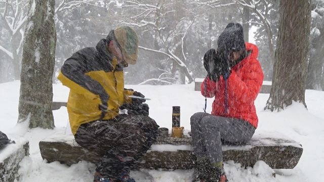 今回は休憩所内が暗かったので外でコーヒーを淹れました。外だと動画のように吹雪に遭う可能性があるので、ぜひ休憩は小屋内でお取りください。申告すればバーナーも使えるのでゆっくり温かいコーヒーが楽しめます。