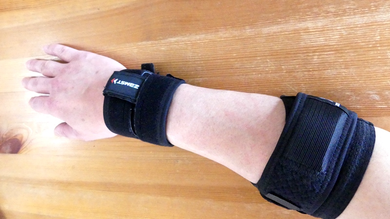 日本のスポーツメーカー・ザムストの手首&肘サポーターは締め付けやすく使いやすいです。