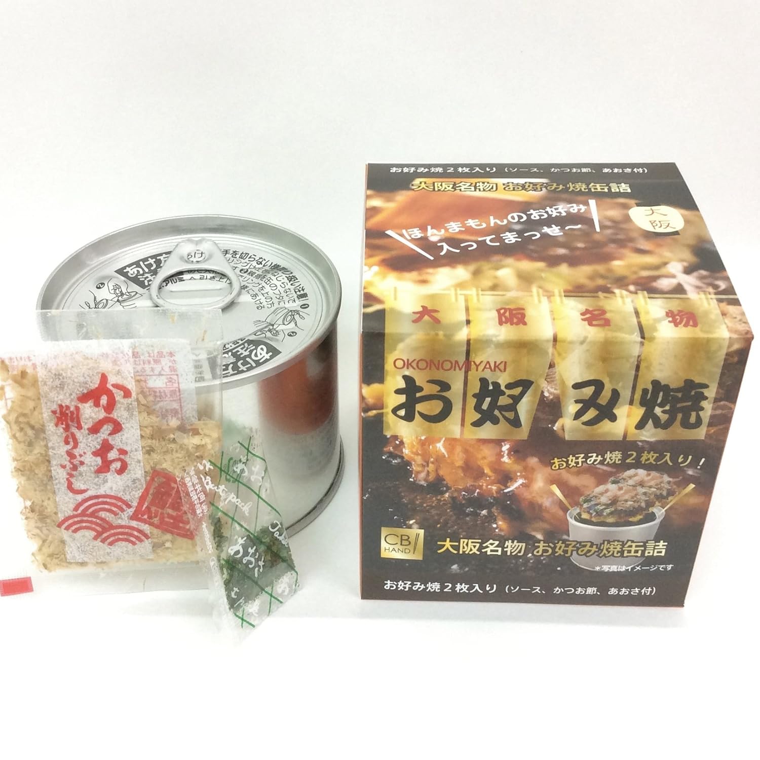 たこ焼きに続いて、お好み焼きも缶詰になっています。こちらもウケ狙いで盛り上がる一品。かつお節&あおさが付いていてなかなか本格的です。中身の見た目はハンバーグに近い形ですが、ちゃんとお好み焼きになっています。