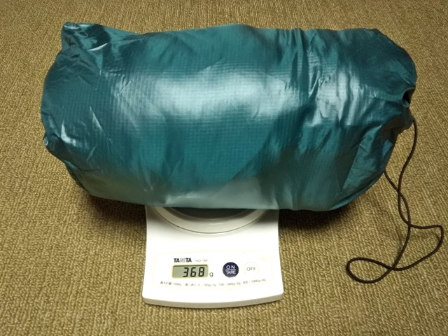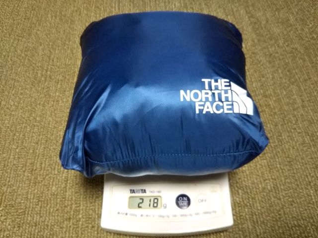 私が使っていた昔のダウンジャケットが368gで、重量差は150gです。