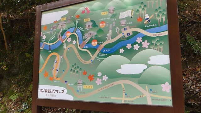 今回は高雄から嵐山まで。前回のゴール地点の高雄から金雲渓を歩いて清滝へ出て、嵯峨野地区を抜けて嵐山までの約10kmのコースです。