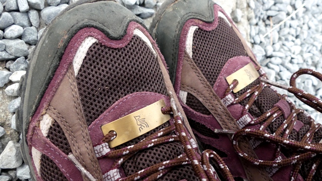 難所を歩く時や靴紐を結ぶ時など、足元を見るたびに目に入って安全意識を思い起こしてくれます。今回もプレートを目にするたびに気が引き締まり、無事に怪我も道迷いもなく踏破できました。