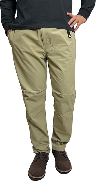 日本のアウトドアブランド・ロゴスのクライミングパンツ。撥水加工されたストレッチ生地を使用し、ナイロンとポリウレタンの混紡素材で耐久性とストレッチ性も十分。バックル付きのベルトも付いています。カラーはベージュ、カーキ、ブラックの3色。