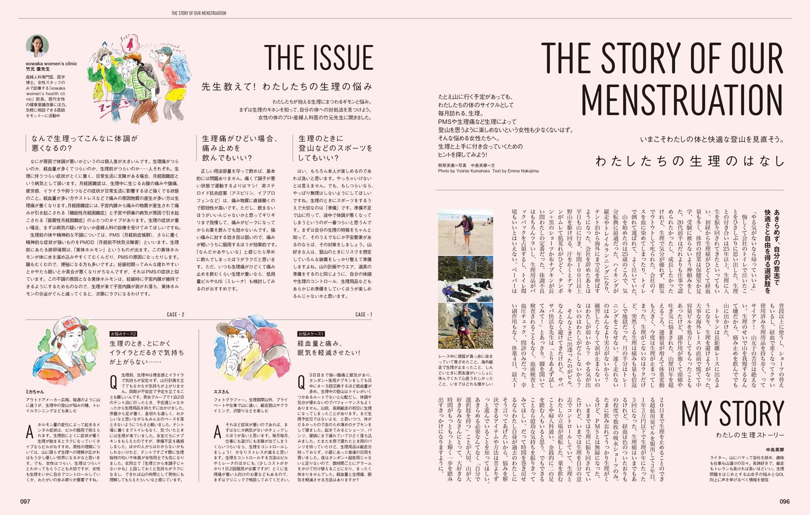 ・山と生理についての記事は特に学びになった。ピル服用の年間費用は3万円以下で120日まで生理が止められる例も。ただし副作用や血栓症対策で3か月は様子を見ながらの服用となる。ピルを使えば縦走登山や海や温泉も余裕で楽しめ、PMSが無くなる。