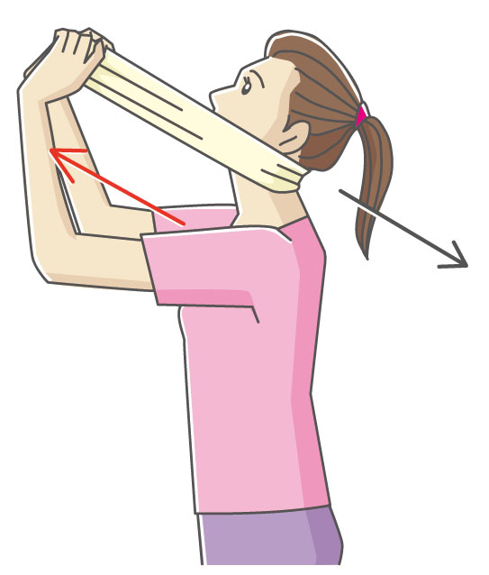ストレッチを行うと首が楽になった。これに加えて、タオルで後頭部を支えるストレッチも行う。