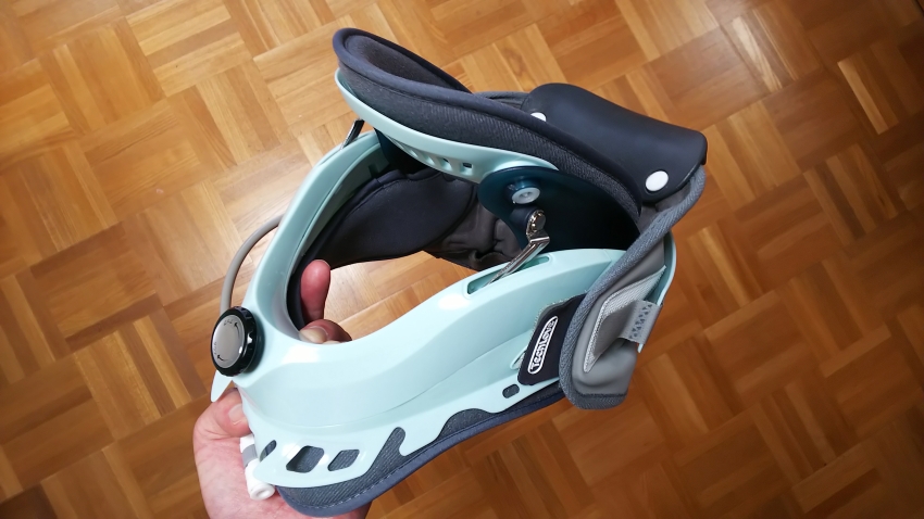 日本製の一般医療機器「ネックストレッチャー」。ダイヤル固定式の土台だけでなく、空気圧も使ってしっかりと頭部を支えてくれる。
