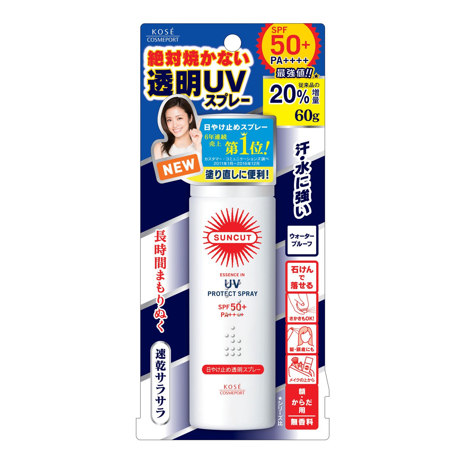 スティックタイプでも塗り伸ばしが要るのなら、スプレータイプが登山向けといえます。これはSPF50+ PA++++のスプレー式日焼け止め。塗ムラブロック技術、逆さスプレーOK、ウォータープルーフで汗・水に強いのが魅力。内容量も60gあり、個人的にはこれがおすすめです。