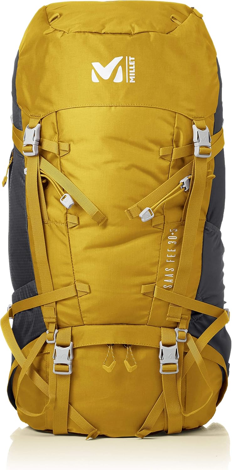 ミレーの定番バックパック・サースフェー30+5リットルのゴールドクミンカラーがモデルのようです。サースフェーはフランスの登山ブランド・ミレーの100年培った技術が詰まった人気のロングセラーバックパック。背中に吸い付く重心設計・背中が蒸れないドライテクノロジー・使い勝手の良い多種多様な収納力が魅力。レインカバー付きで大型スマホも入るヒップベルトポケット、背負ったままボトルが取り出せるサイドストレッチメッシュポケットなど、欲しい性能はだいたい揃っています。