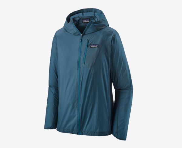 パタゴニアのウインドブレーカー。約100gで軽量、伸縮性のある袖やドローコード付きの裾、フィット感が高いドロップテイルデザインなど使い勝手も優れています。外側のジッパー式チェストポケットに本体を詰めて、コンパクトに収納もできます。