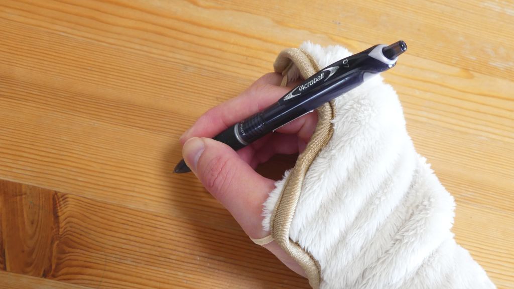 ちなみに、親指と人差し指のあいだがカーブして縫製されているのでペンや鉛筆が持ちやすいのも素晴らしいです。