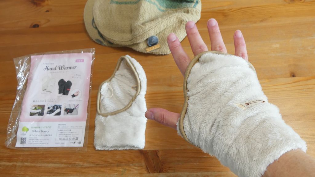 それで見つかったのが、ホワイトビューティーの手の平オープン型ハンドウォーマーでした。