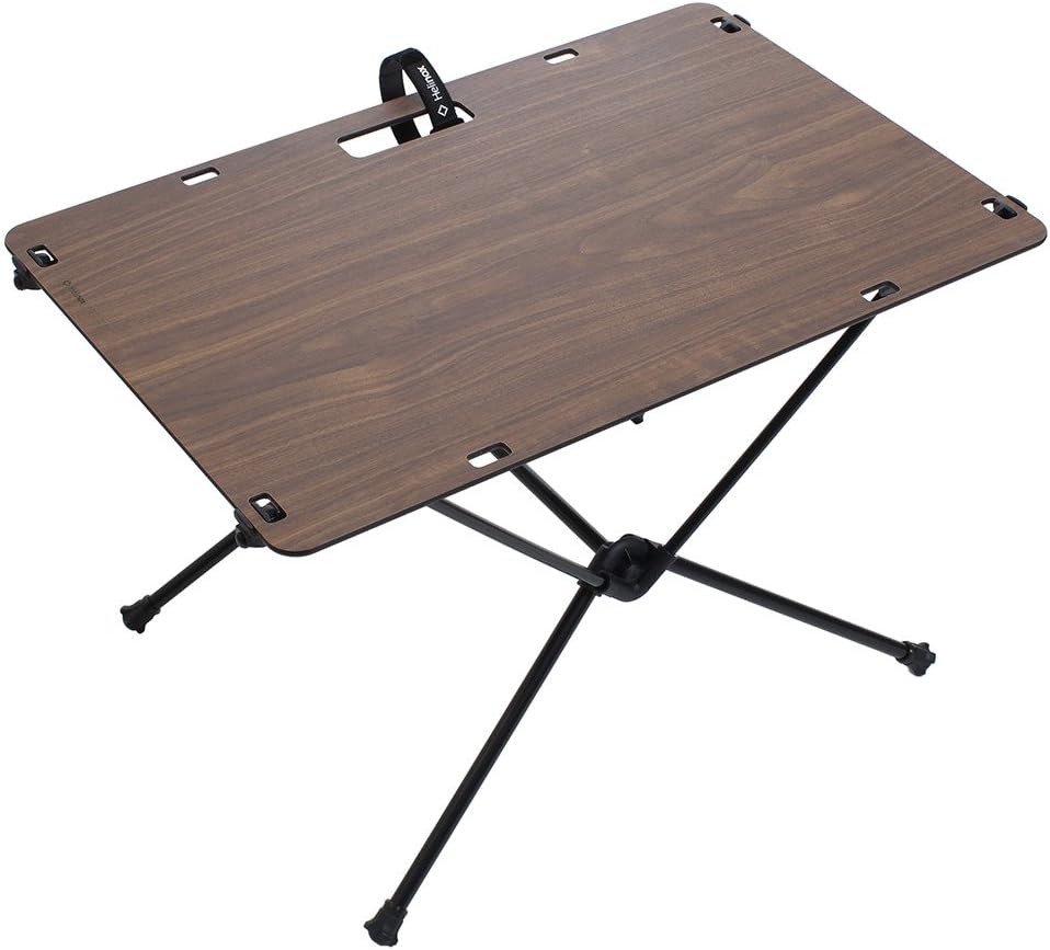 健人が使っていたテーブルはヘリノックスのテーブルワンでした。板はメラミン樹脂にウォールナット仕上げを施しています。折りたたむ事はできませんが、固いのでメンテナンスしやすくコーヒーも作ったりしやすいです。サイズは幅57cm×奥行き40cm×高さ38cm。