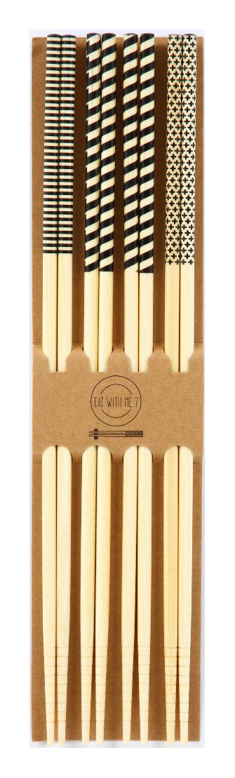 七子が山菜を揚げているときに使っている縞模様の菜箸。おそらく不二貿易の菜箸4本セットのうちの1本です。長さは約33cm。