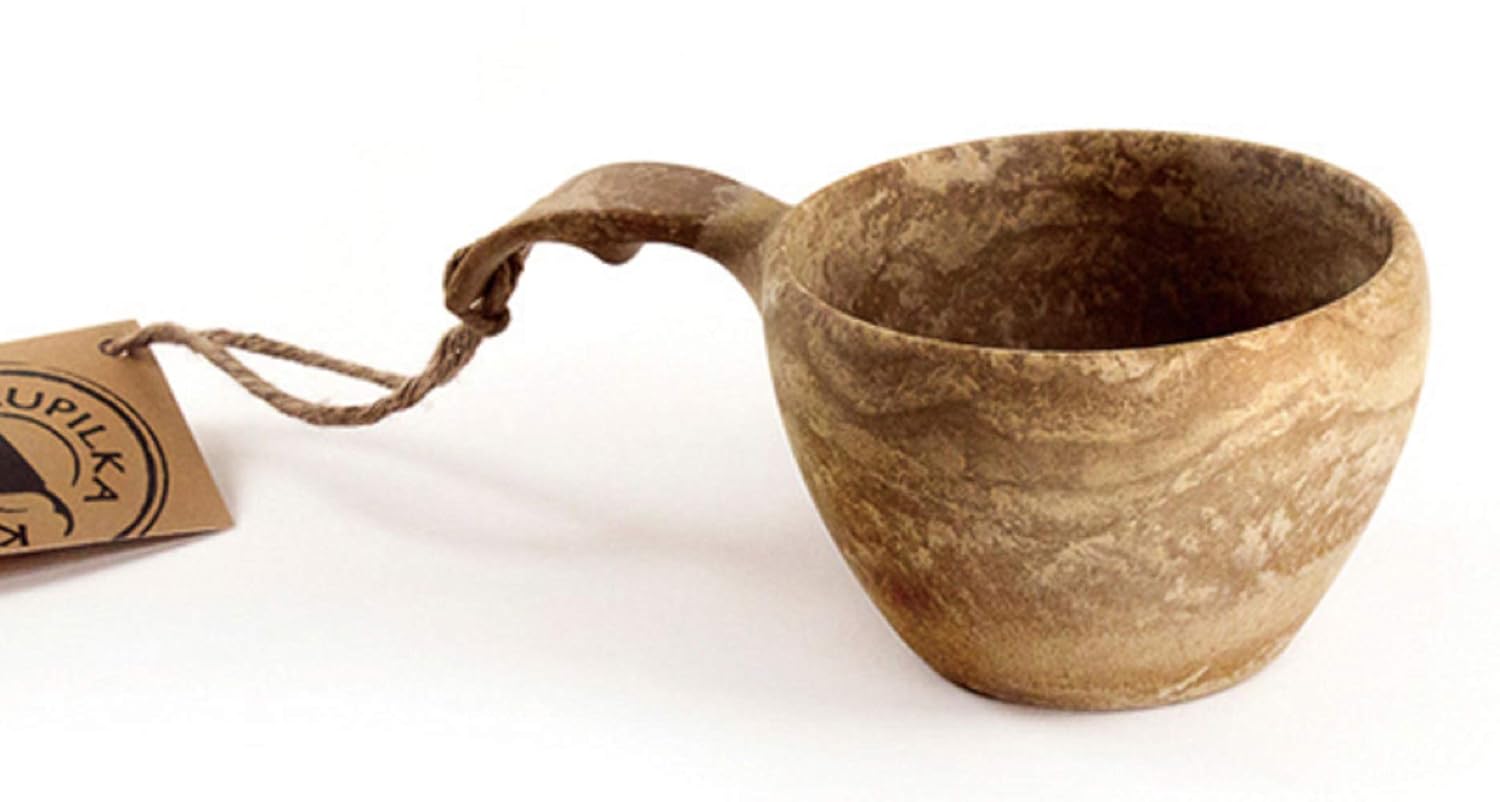 七子が山菜を揚げているときに使っている木製カップ。クピルカのククサ37サイズ、カラーはBNです。ククサはフィンランド北部のラップランドで古くから伝わる、白樺のコブをくり抜いて作ったカップで「贈られた人が幸せになる」という言い伝えがあります。ガチのククサは胡桃オイルで拭き上げるなどのメンテナンスが大変なのですが、これは木繊維とポリプロピレンを混ぜ合わせた素材なのでお手入れ簡単。耐熱性と耐久性にも優れています。