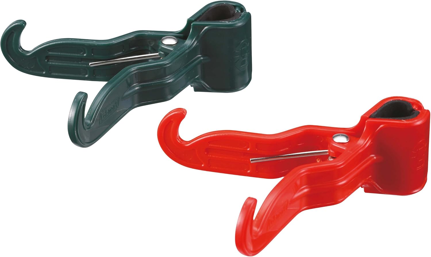 七子が友人の宏美に動画を送った際にテーブルについていたゴミ袋引っ掛けフック。コールマンのコンビニハンガーです。テーブルの脚やポールにクリップで取りつけ、小物を掛けることができます。軽量のランタンやペットボトルホルダーなど、さまざまなものを掛けられます。100均ショップでも似たようなものが売っていますが、コールマンを使うとやはりちょっとオシャレです。