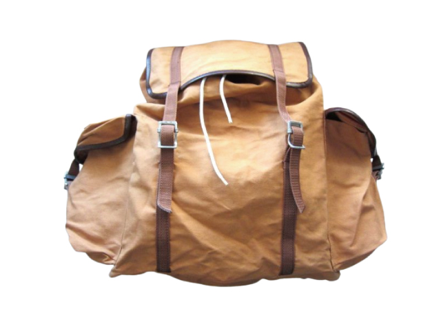 これは、昭和の時代の登山で多くの人が使っていたキスリングザック。