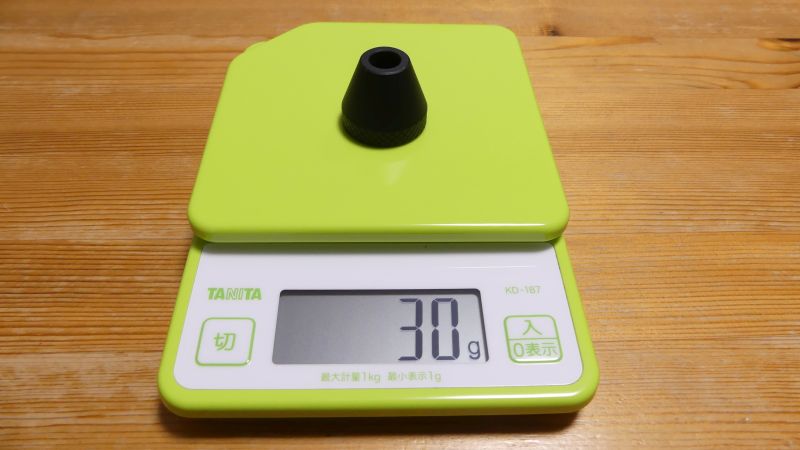 このキャップは金属製で、重量30g。VSSLジャバの本体重量は396gなので8%削減し、366gに軽量化できます。
