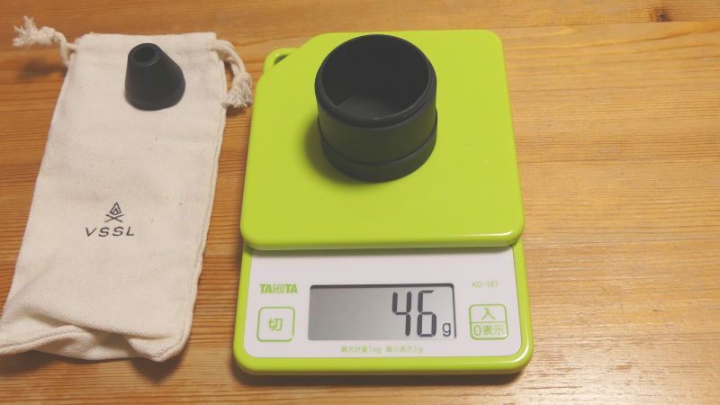 ジャバミルの下部にあるコーヒー粉受けパーツ、重さは46gです。