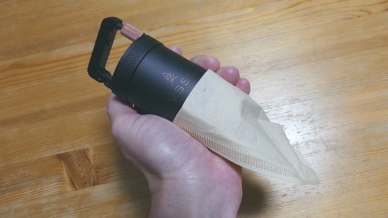 このように粉受けパーツを使わずにペーパーフィルターを直接巻くことで更なる軽量化が図れます。