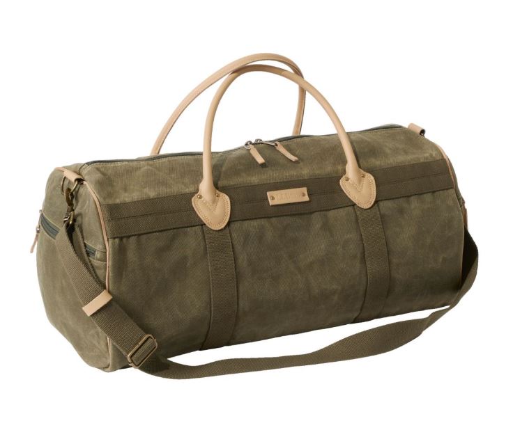 L.L.Beanの伝統的デザインをモチーフにしたクラシックなダッフルバッグ。ワックスキャンバス生地は丈夫で耐水性があり、ハンドルやトリムなどはフルグレインレザーを採用。内外のジップポケット、底部の補強など使い勝手にも配慮しています。