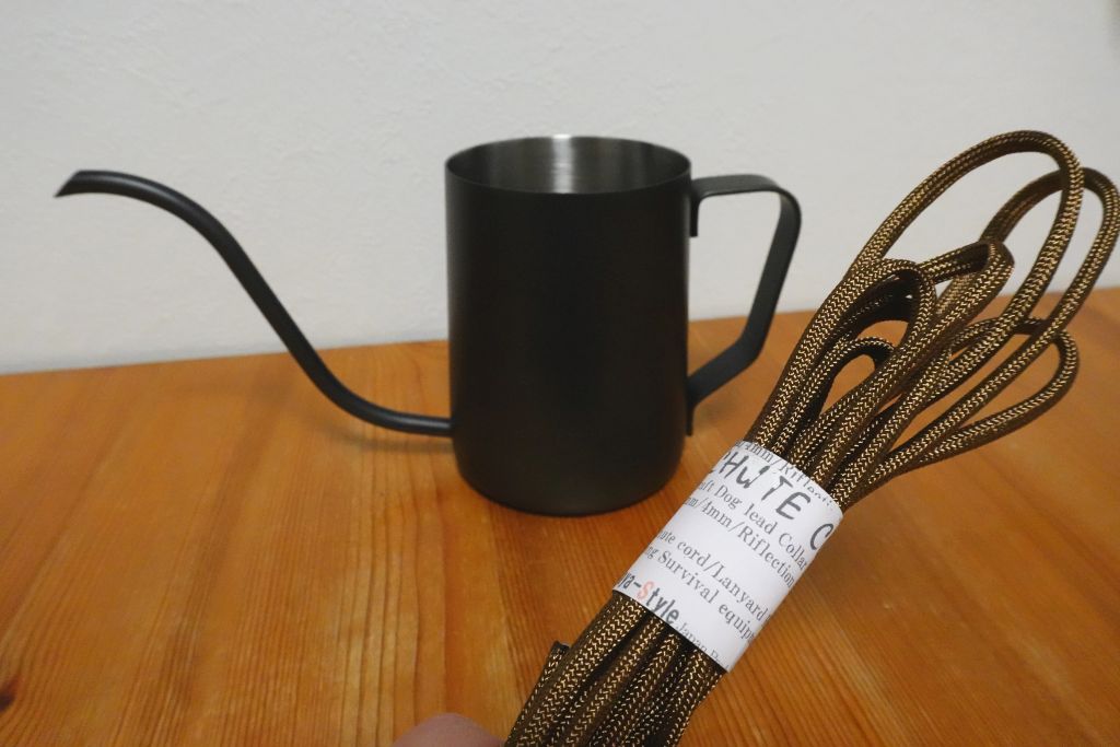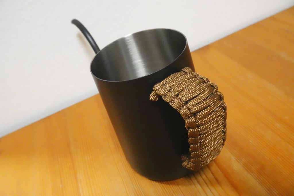 450の注ぎやすさについては、300と同じく細く注湯しやすくてコントロールしやすいです。取っ手にパラコードを巻けばグリップ感はかなり良くなります。