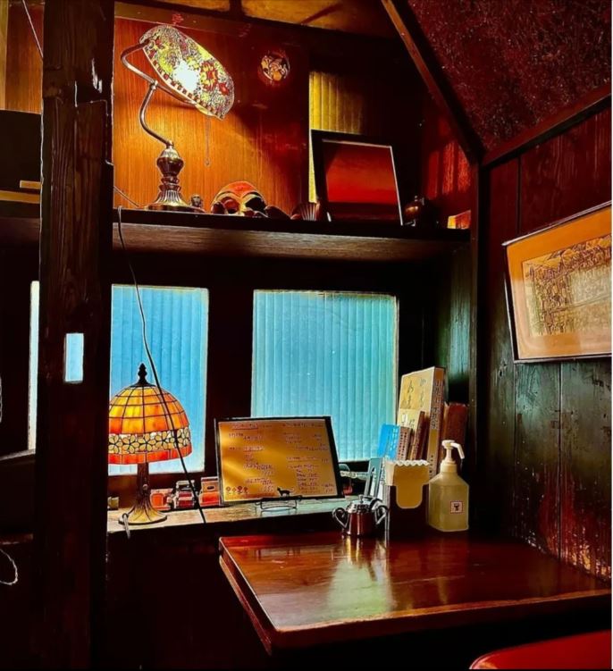 2軒目は「細い路地の先のひっそりと渋い喫茶店」「入り口のドアはガラス」「隅の一角に読書席がある」という情報から、「ラドリオ」がモデルかなと思います。