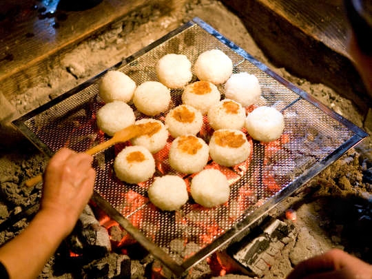 ●おにぎりに味噌を塗って焼く「献残焼き」