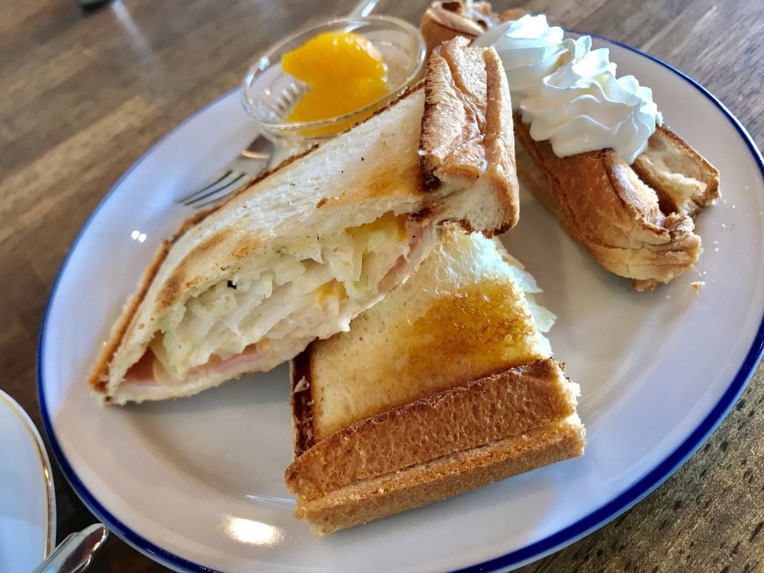作中通り、ホットサンドの切り落としにホイップクリームが載っています。