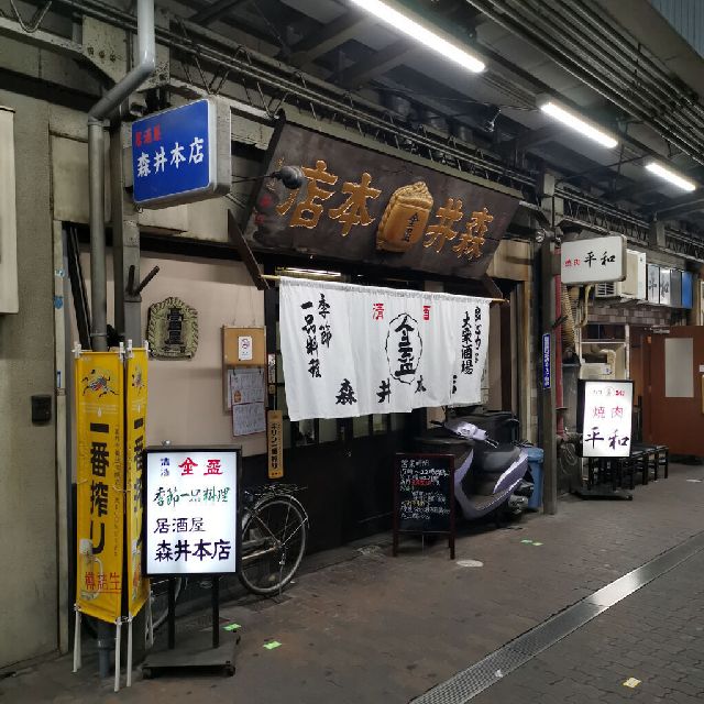 1軒目、「ガード下の老舗居酒屋」しかヒントが無いのですが、100年以上続いている有名な人気店「森井本店」なのではと思います。店内には昭和の雰囲気が漂い、名物の「金盃酒造の樽酒」はこの店でしか味わえない希少な酒で全国から日本酒通が集まるそう。
