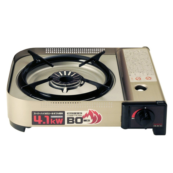 犬山あおいがすき焼きを作るのに使っていたカセットコンロ。フチの風防の丸穴の形状的に、イワタニのカセットフー BO、CB-AH-41のヘアラインシルバーです。お手頃なカセットコンロで3kw、イワタニ・マーベラスで3.5kwのところ、4.1kwという強力な火力を誇ります。ダブル風防もあって屋外にも強いので、すき焼きやキャンプ鍋におすすめのアイテムです。弱点はガス消費量が多く燃焼時間が短い点。コンビニに買い足しに行かなくてすむように予備燃料は多めに確保しておきたいです。