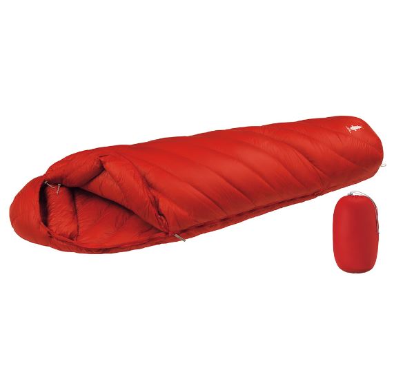 恵那が父親に買ってもらった寝袋、モンベルのダウンハガー800です。国内の3000m級の冬山で使用できるガチな寝袋。スーパースパイラルストレッチシステムで伸縮するので寝心地がよく、800フィルパワーの高品質ダウンでマイナス7度まで快適に過ごせます。価格は50000円で野クルの寝袋の約10倍。部長が鼻血を出すのも仕方ない価格差です。