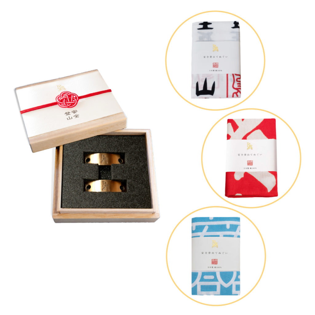 速乾性に優れる本染めの高級てぬぐい「ヤマノモリ安全登山てぬぐい」と、登山靴に取り付ける安全祈願アクセサリー「ヤマノモリ安全登山シューズプレート」がセットになっており、通常の合わせ買い価格7,475円が約20%割引の5,980円(送料込み)の特別価格となっています。