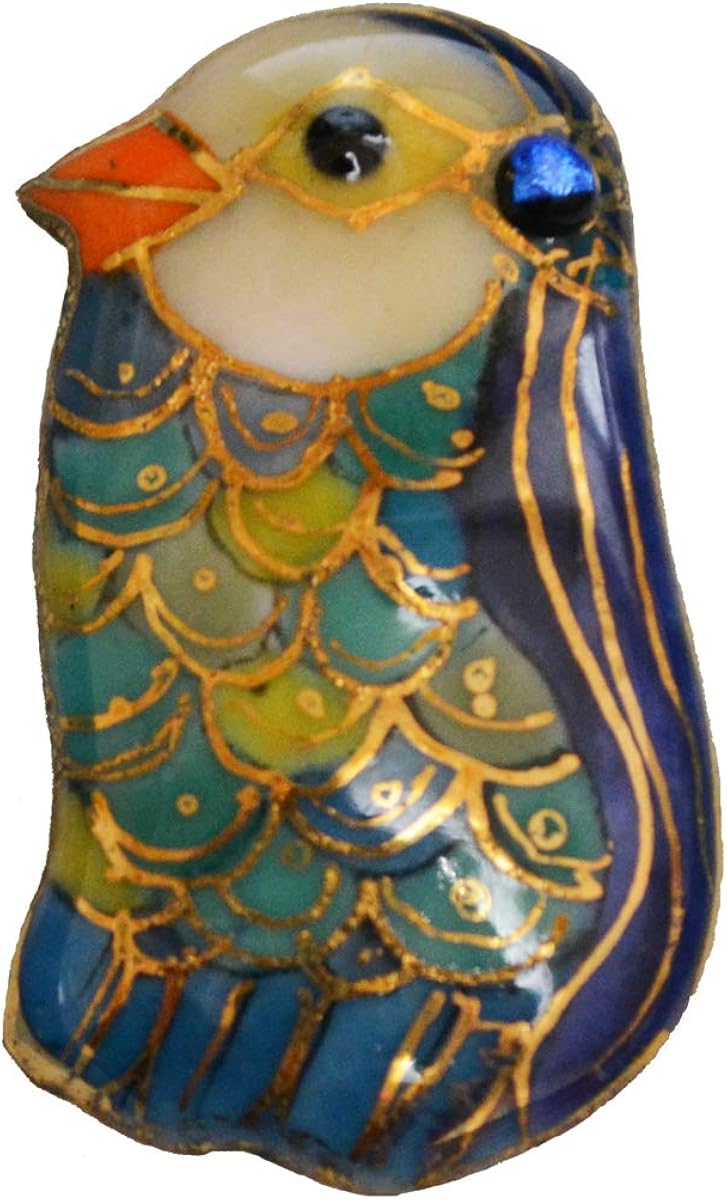 兵庫県西宮市在住の七宝焼作家・土田善太郎氏によるアマビエのピンブローチ。全8種類。サイズは高さ3cm×幅2.5cm。重さは約3g。ハンドメイドで1点1点作られているので、同じデザインの商品でも色やサイズなどが微妙に異なっています。なお、裏面の留め具が異なる着物の帯留めブローチ版もあります。