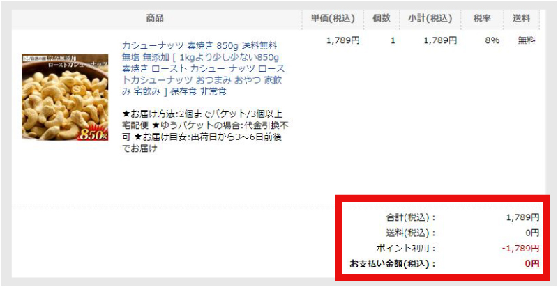 ちなみに、私は楽天カード会員で日々の買い物でポイントが貯まっているので、今回は全額ポイントで買いました。