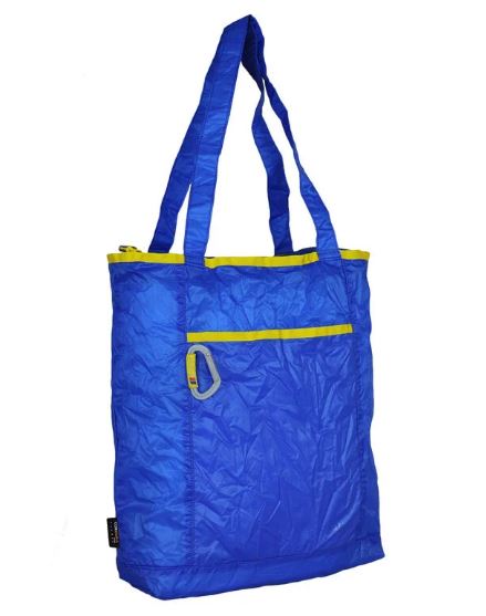 イギリスのアウトドアブランド・バーグハウスの軽量コンパクトなトートバッグ。ファスナー開閉式で、ポケッタブルに収納可能。サイズは約36cm×28cm×9.5cmで、収納サイズは約12cm×14cm。外側にポケット1つ、カラビナも付いています。