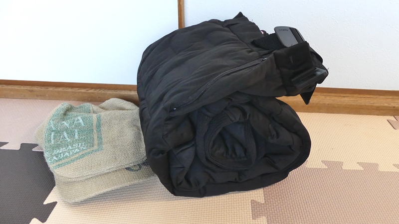 大量にダウンを使っているので体積は普通のズボンの2倍~3倍。ズボンを丸めたときの直径は約22cm。丸太のような大きさになるので収納場所に困ることがあるかもしれません。