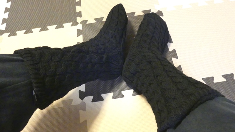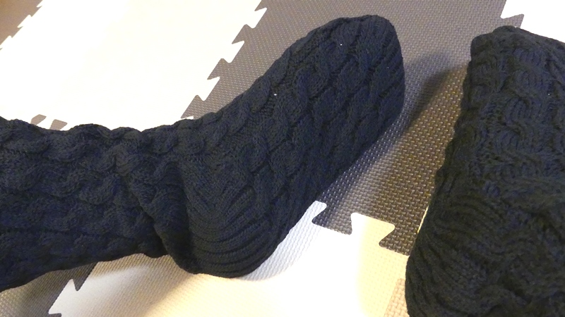 冬用ルームシューズはちょっとした動作で脱げたり、あぐらを組みづらかったりして使い勝手がいまいちだったのですが、このソックスはその点まったく問題ありません。汚れたときの洗濯もルームシューズより楽です。
