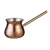 トルココーヒー(ターキッシュコーヒー)を淹れる専用器具。銅の風合いがカッコいいです。上手く淹れる事が出来れば、煮出して抽出しているのに苦くなく、コクがあり美味しいコーヒーが出来上がります。これはデミタスカップで3杯分を抽出することができます。シナモンやカルダモンを入れれば、中近東っぽいオリエンタルなコーヒーを楽しむことができます。