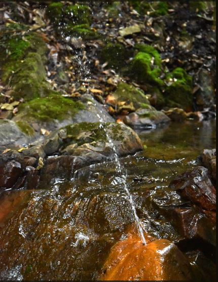 水は鉄分を含んでいて、岩は酸化鉄の影響で黄褐色に。