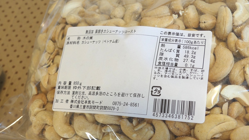 ほぼ同価格で安かった「ぼくの玉手箱屋」のカシューナッツ