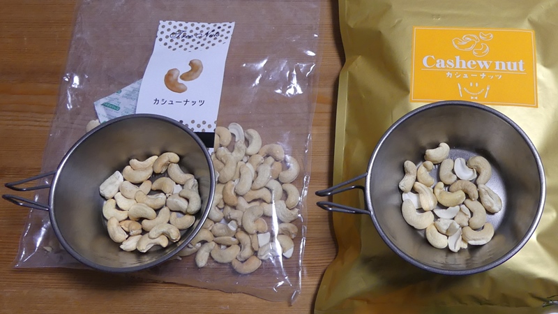 実際に2つのカシューナッツを見比べてみると違いがすぐにわかりました。