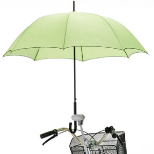 片手運転はブレーキの利きが悪くなって危ないというのはわかります。でも、さすべえ(傘取り付け器具)くらいは使っていいと思うのですが。自転車に突起物が付いたり、幅が60cm以上になると駄目というルールなんだそうです。融通がきかないですね。