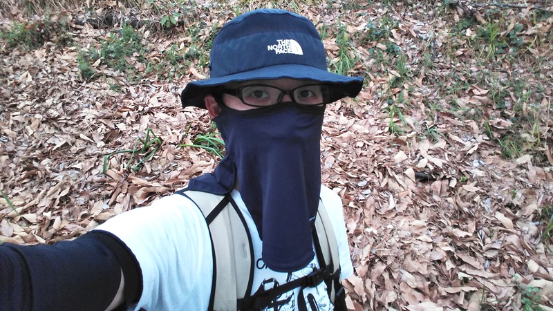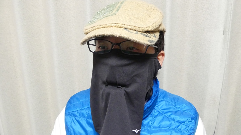 さっそくフェイスカバーを装着してウォーキング開始。着用感は良くてズレませんが、息を吸うと口元が張り付くのがやはり気になります。
