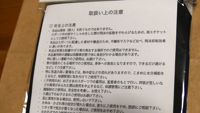 こういった注意書きはもしもの訴訟リスクにそなえておおげさに書くものだとは理解していますが、フェイスカバー使用時は息が上がるような走りはせず軽いジョギング程度に抑えようと思います。