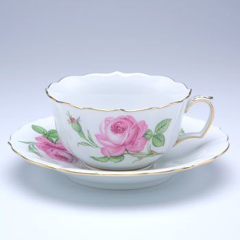 モタエが生徒たちに「コピルアクをどうぞ」とコーヒーをふるまう時に使った高級食器は、マイセンのローズティーカップと思われます。名実ともに西洋白磁の頂点に君臨する名窯・マイセンの「マイセンローズ」は最も人気が高く、さまざまな色や描き方で作られています。販売価格は50000円前後。質実であり優美な姿は、おもてなしの席に最適です。