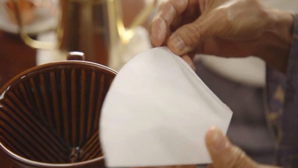 たこ師匠が愛した人・幸子が使っていた茶色のドリッパーは、カリタの102ドリッパー。陶器製で、2杯~4杯用の三つ穴式。プラスチック製のドリッパーと違って、ペーパーフィルターを乗せて一度湯通しすれば保温が効いてコーヒーが冷めにくくなります。陶器は落としたりしたときの破損率が高いのですが、質感・色味的におしゃれです。和服にも似合う色です。