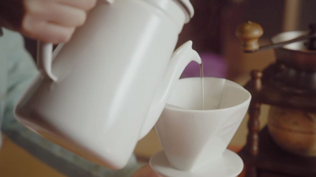 若かりし頃の幸子が使っていた白いポットは、カリタのペリカンポット。こちらも102ブラウンと同じく「ひと昔前のコーヒービギナーにおすすめ」のケトル。ホーロー製で直火にも対応。今流行している細口ケトルに比べて太くお湯が出るので調節が難しいです。ただ、冷たさを感じるステンレスとは違ってホーローならではのあたたかみがあるので、陶器ドリッパーやホーローマグなどと合わせると良い感じにインテリア映えします。